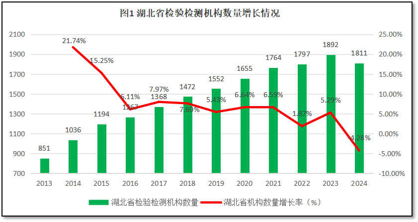 过去12年广东省检验检测机构数量的变化如图1所示。